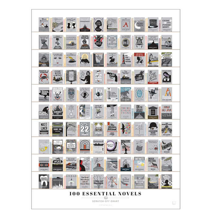 Poster da Grattare con 100 Romanzi Essenziali, Stampa Artistica da Grattare, Lista dei 100 Migliori Libri di Narrativa, Decorazione Murale Letteraria