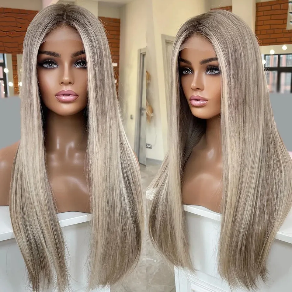 Parrucca frontale in pizzo 13x4 capelli umani 100% vergine europea Color biondo e seta parrucche per donna con Base in seta