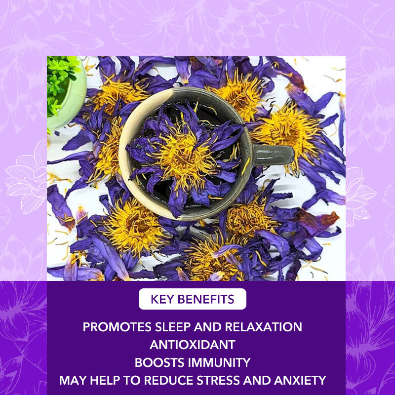100% Food Grade Dried Blue Lotus Flowers Handmade Nymphaea Caerulea Tincture Flavor Tea for Health Beauty Care