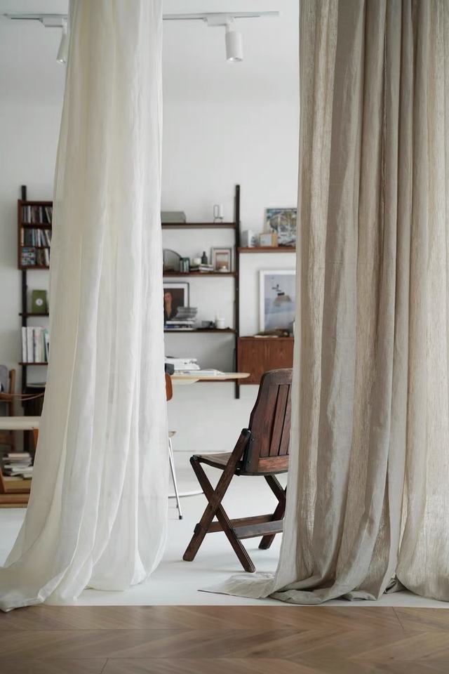 Tenda in Lino Francese 100% Spesso di Alta Qualità Pre-Lavato Tinta Unita Puro Lino 180GSM