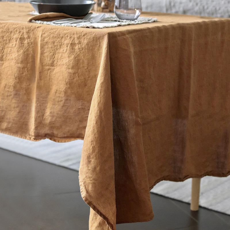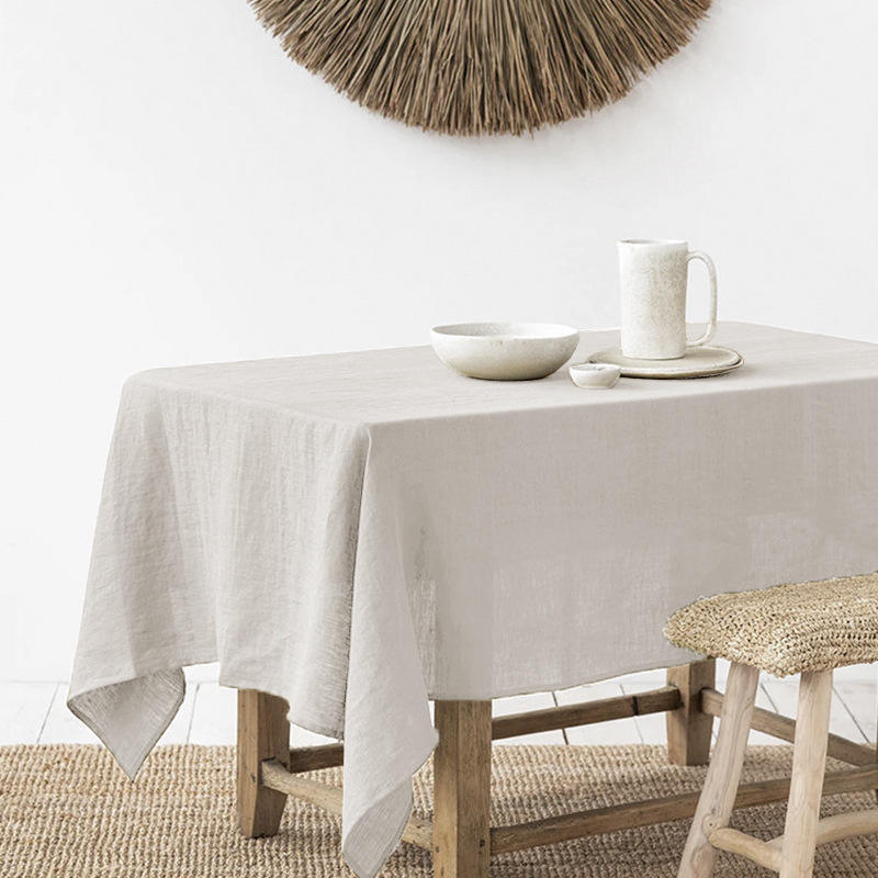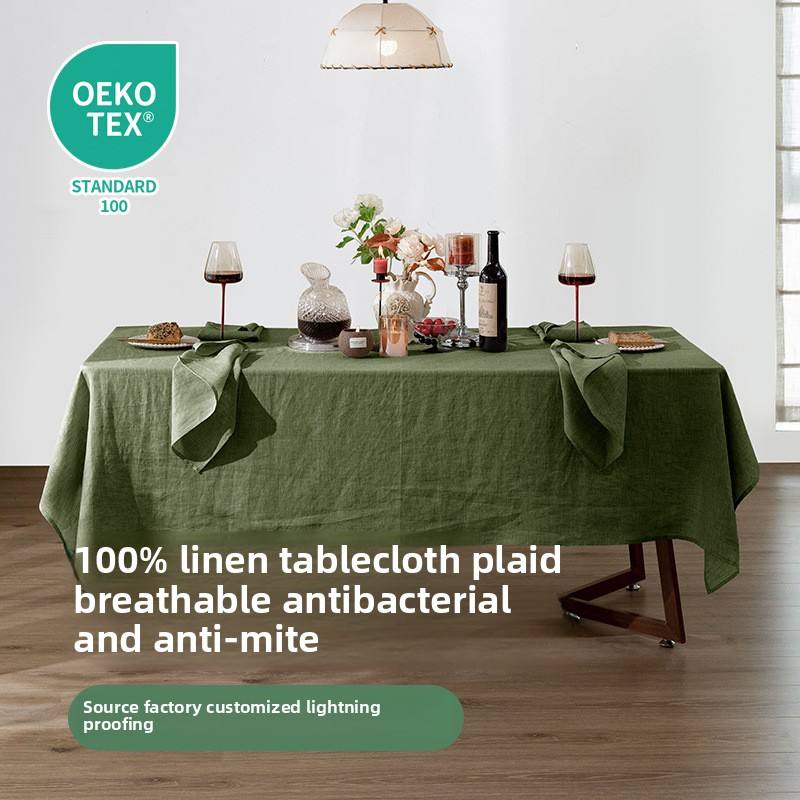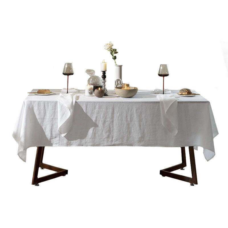 100% French Yarn-Dyed Premium Linen Eco-friendly Oilproof 185 GSM Tablecloth White Rectangle Table Runner Solid Color Modern