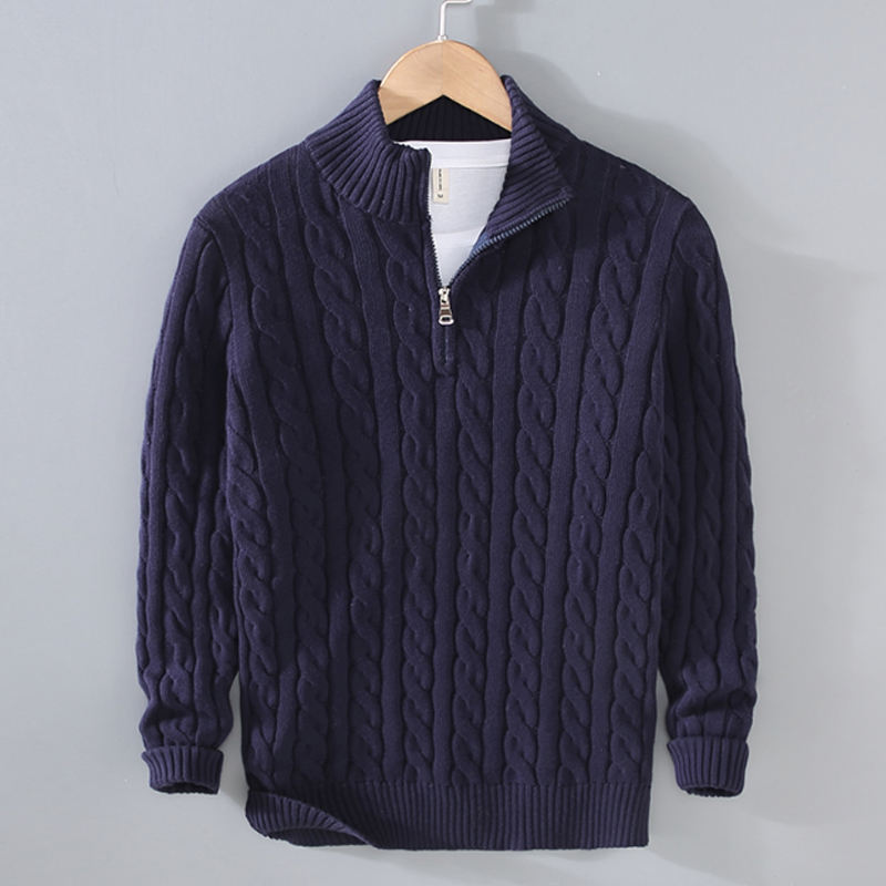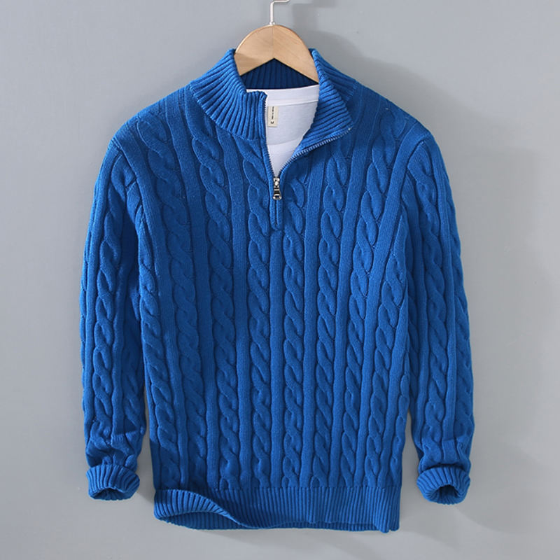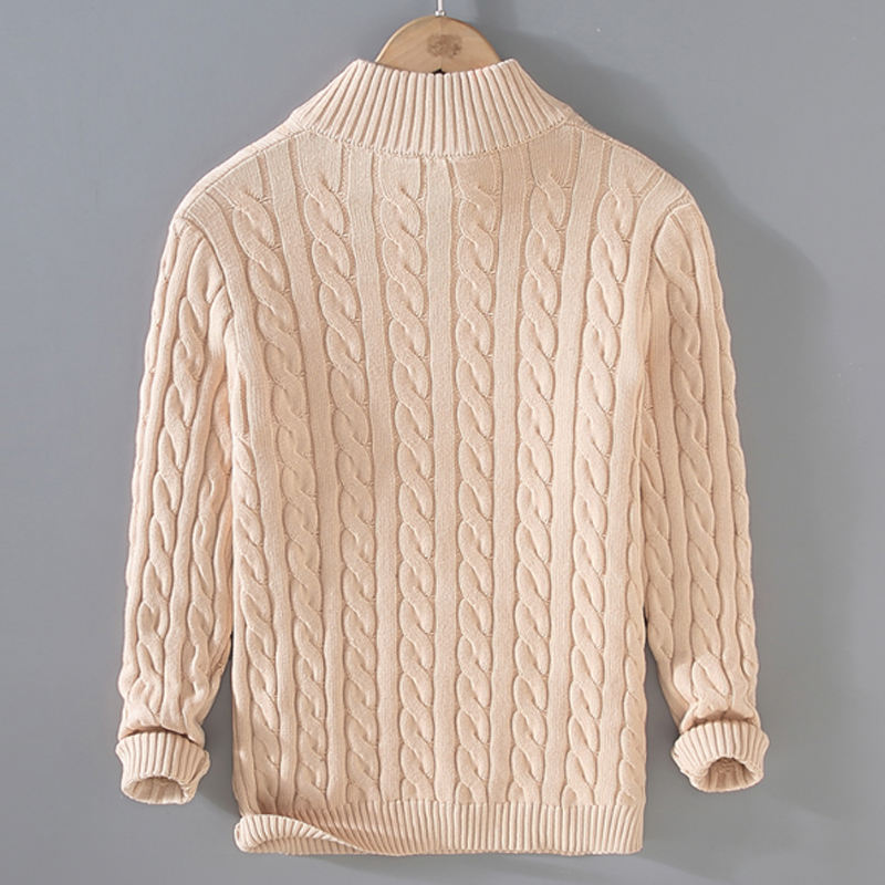 Maglione da Uomo 100% Cotone Biologico Certificato GOTS con Collo Alto, Zip, Maniche Lunghe e Polsini a Costine