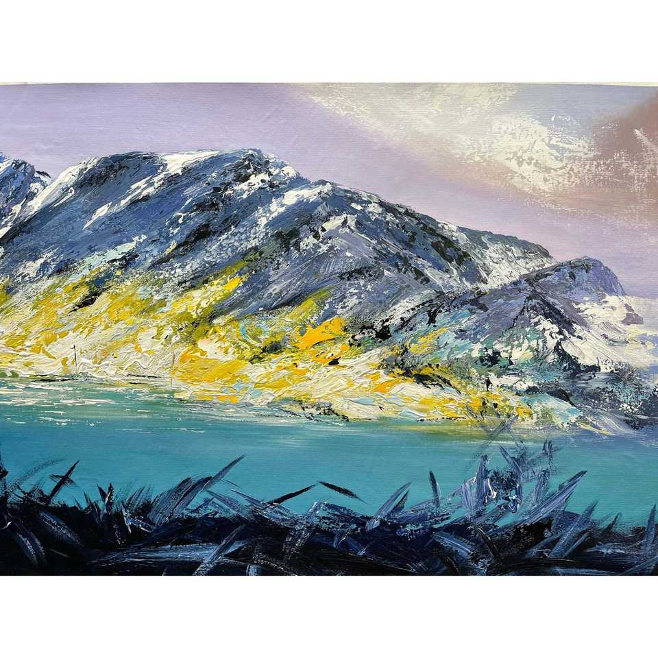 Dipinto a Mano 100% Paesaggio Montano Innevato 36x24 Pollici, Pittura a Olio su Tela con Cornice, Versione Stampata