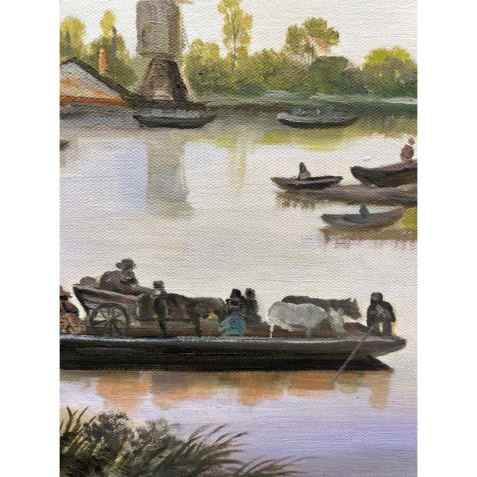 100% Hand-Painted 36x24 Inch Oil Landscape Paintings Classical Field with Boat in River and Village Scenery