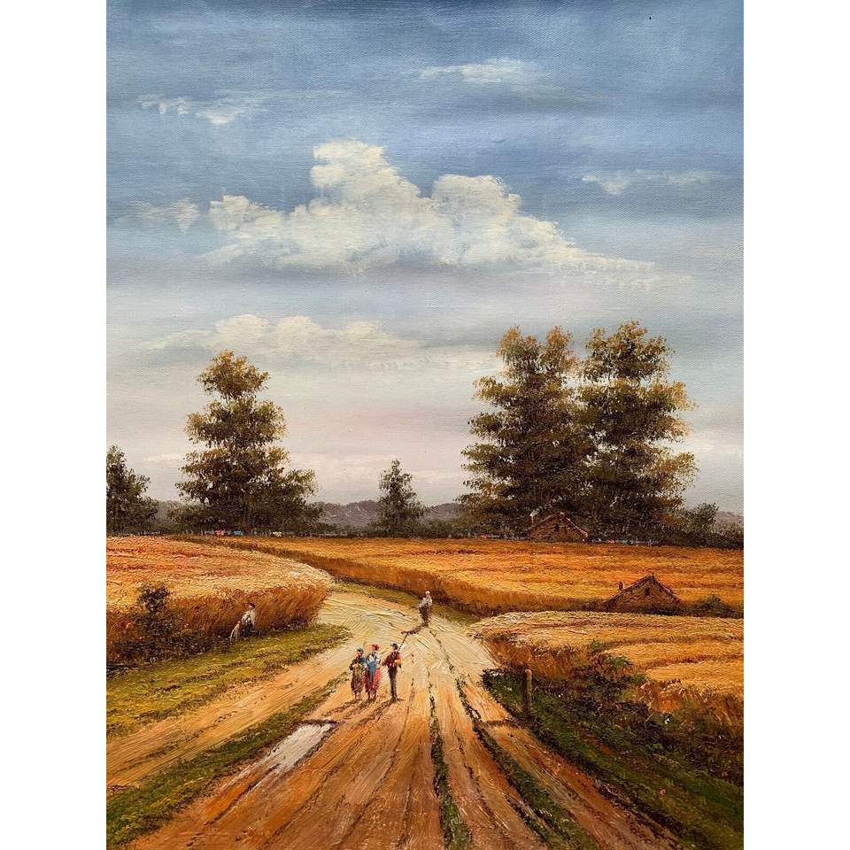 Dipinti a Olio Digitali 100% Fatti a Mano su Tela di Cotone 20\"x24\" Campo Classico Moderno con Albero in Foglia d'Oro Montato su Cornice
