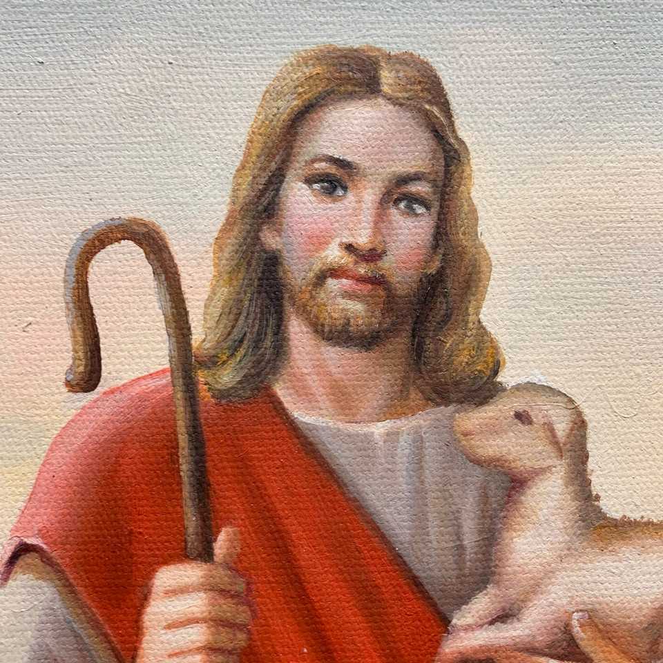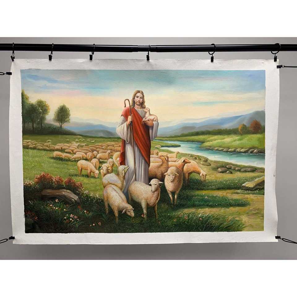Dipinto a Mano 100% di Gesù su Tela 36x24 Pollici, Elegante Ritratto di Gesù in Olio su Tela