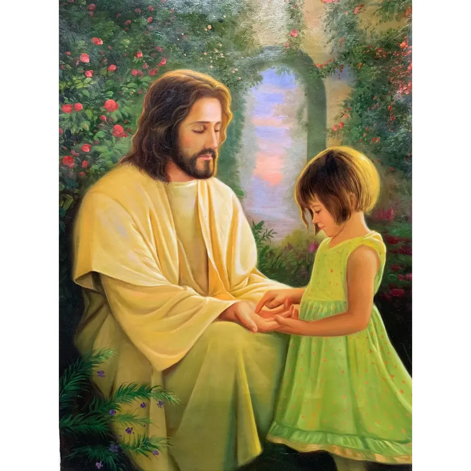 100% Hand-Painted Jesus Oil Painting on Canvas 36x24 Inch Luxury Classical Field Style Anime Design for Bedroom Decor with Frame