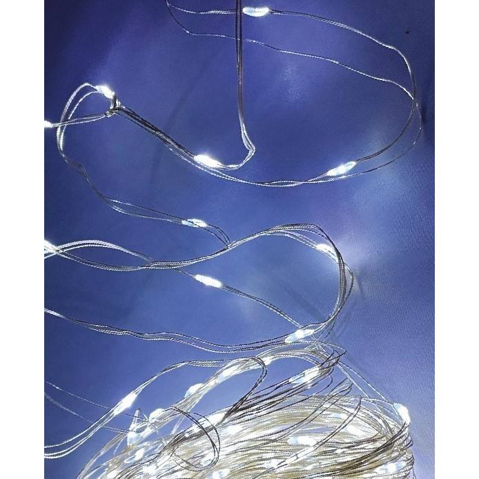100 LED SILVER CHRISTMAS LIGHTS COLD WHITE BATTERY-OPERATED 5+0.1MT