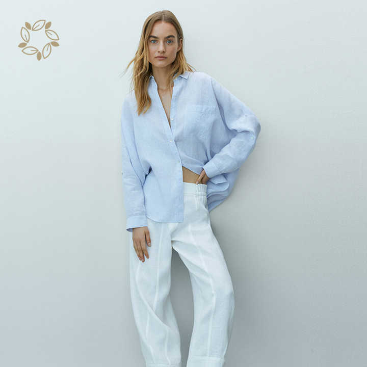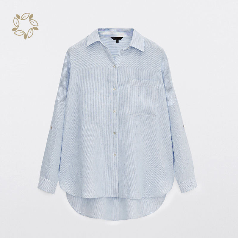 100% Linen Blouses Women Shirt Linen Clothing Linen Tops Woman Blous Long Sleeve Sustainable Workshirt Summer Beach Blouse