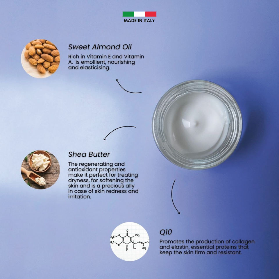 Ubiquinone, almond oil, karité shea buttermain ingredient