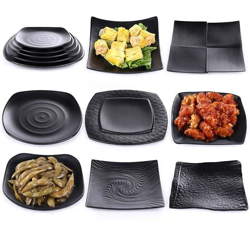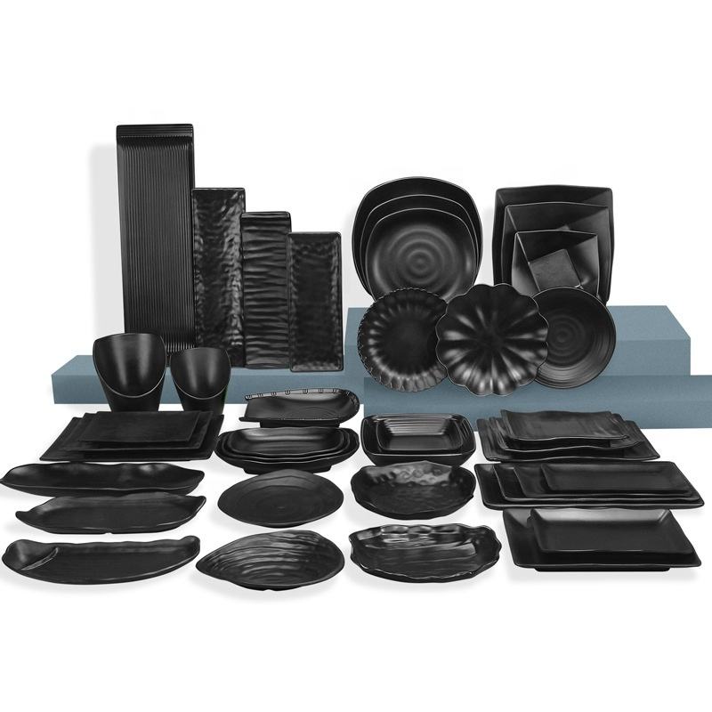 100% Melamine Sushi Serving Soy Sauce Dishes Matt Black Dinnerware Sets for Sushi Restaurant Frosted Rectangular Plates