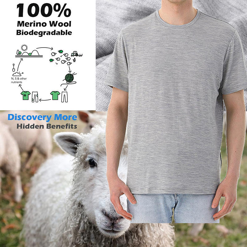 100% Merino Wool T Shirts for Men Odor Resistance Base Layer Lightweight Hiking Travel T-Shirt Soft Undershirt