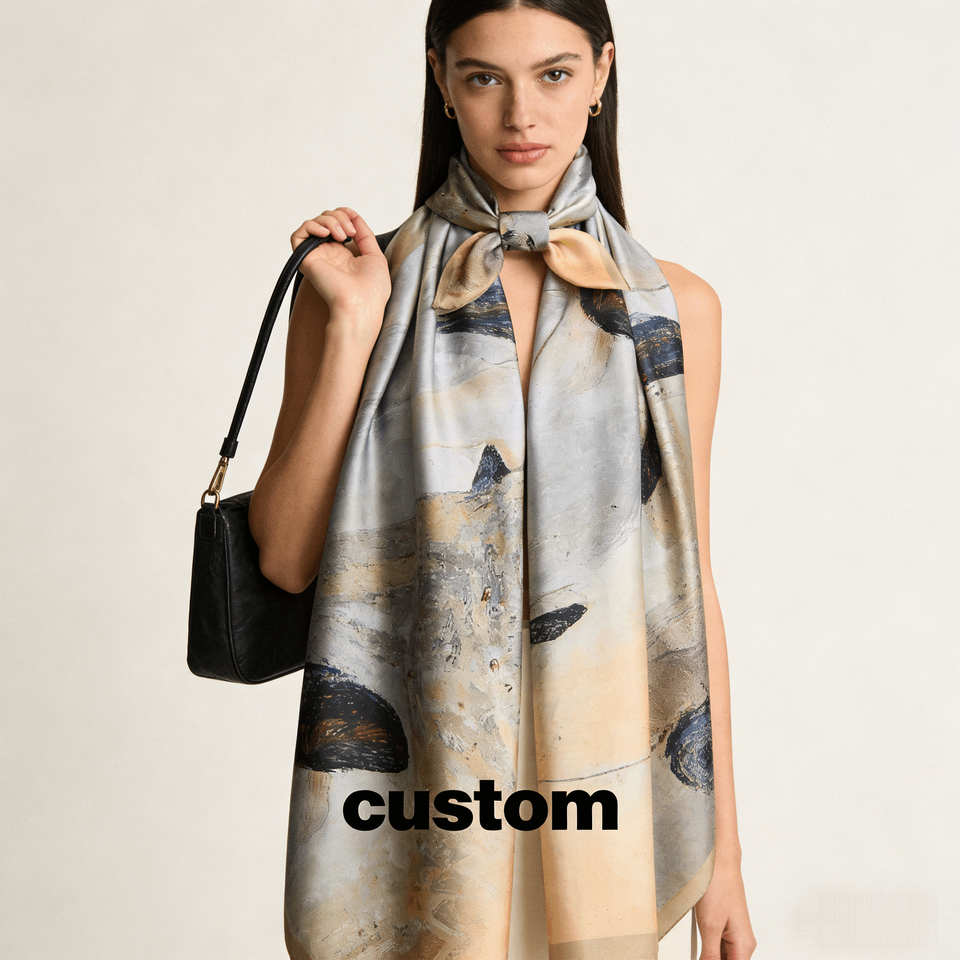 100% Mulberry Silk Women's Square Scarf 70x70cm Elegant Artistic Back Portrait in Blue Yellow Unique Fashion Custom Silk Scarf