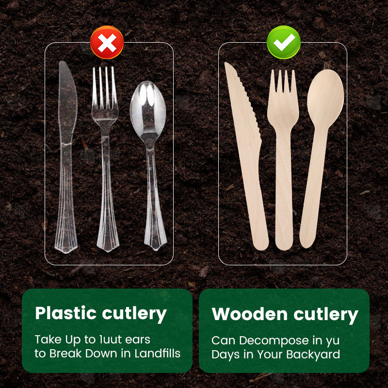 100% Natural Birch Disposable Wooden Cutlery Set (50pcs)(25Pcs) Includes Spoon Fork Knife