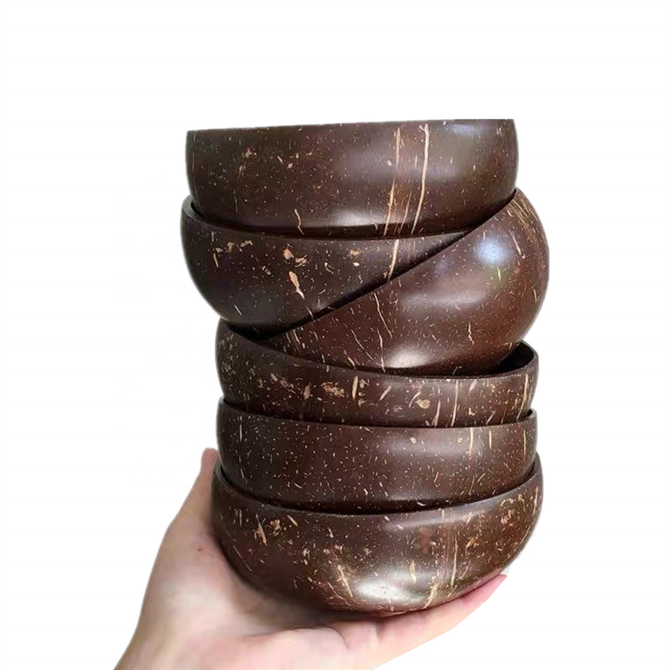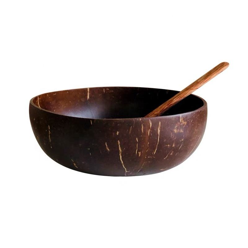 100% Natural -Polished Coconut Bowls and Wooden Spoons Vietnam Eco Natural Organic Coconut Salad Bowl and Forks Set