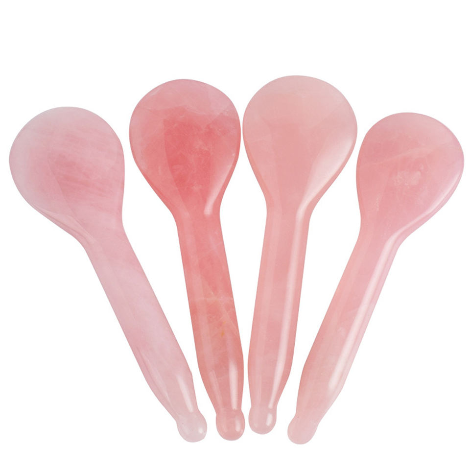 100% Natural Rose Quartz spoon Gua sha with round handle