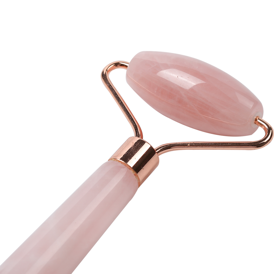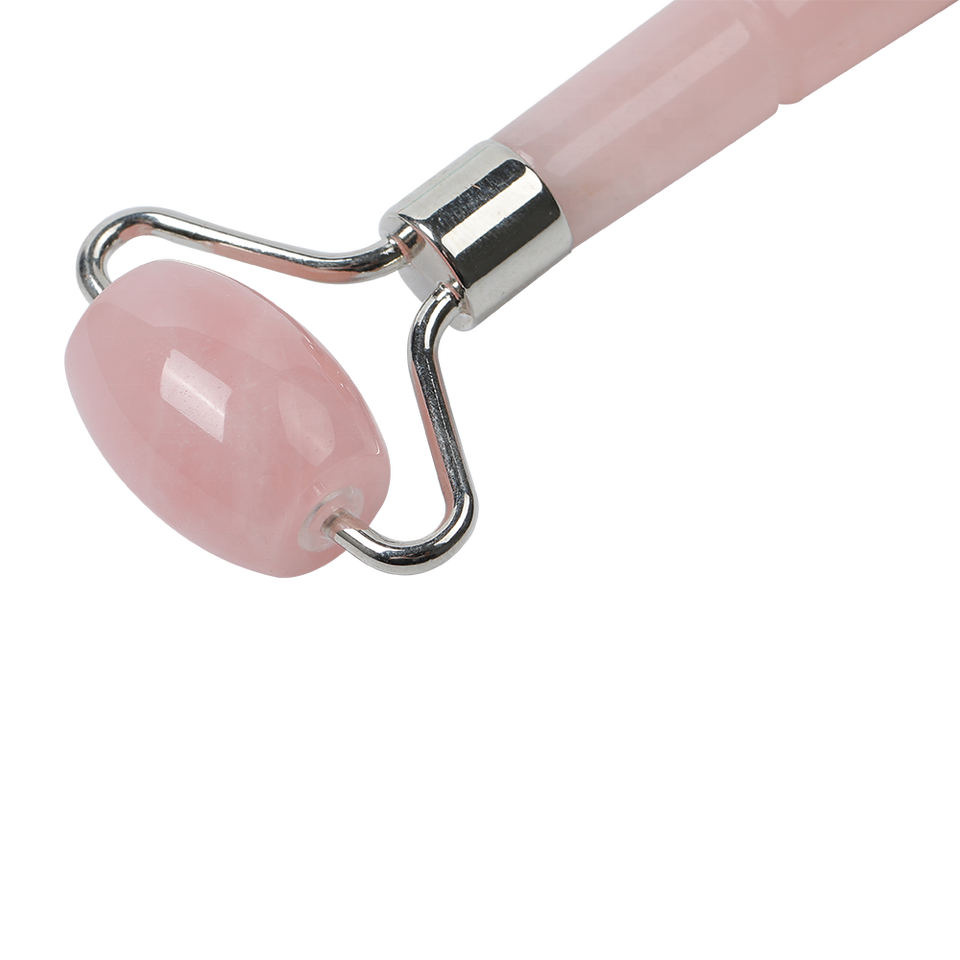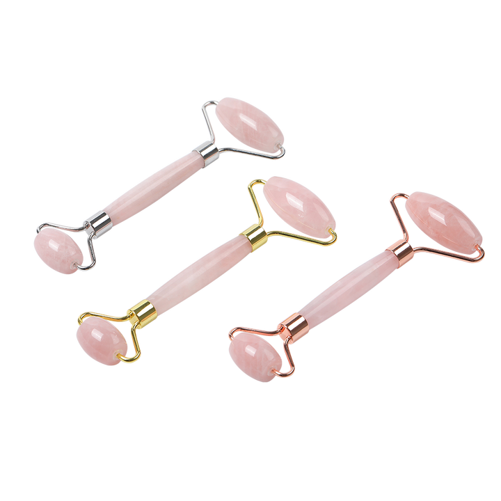 100% naturale rosa pietra di quarzo argento rullo facciale in giada saldato struttura in metallo massaggiatore per il viso