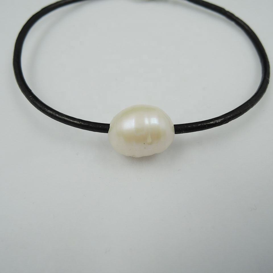 100% Nature Freshwater Pearl Bracelet With Real Leather Cord .9-10 mm Oval Pearl Shape,high Quality Stainless Steel Metal