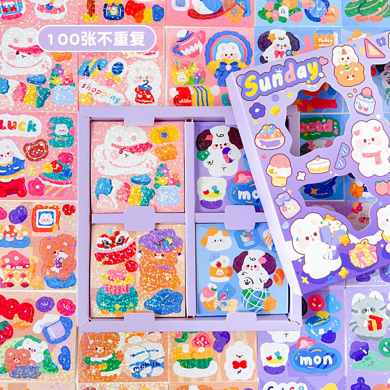 100 pezzo scatola originale Glitter carino Laser Guka adesivo Set manuale adesivo