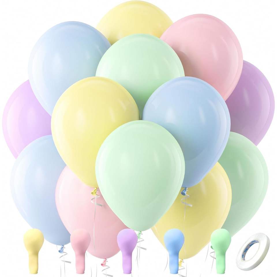 Confezione da 100 Palloncini in Lattice Pastello da 12 Pollici, Multicolore, Effetto Macaron, per Compleanni, Arcobaleno, Elio, per Feste e Matrimoni