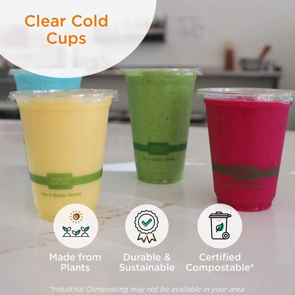 Confezione da 100 Bicchieri Trasparenti Compostabili, Stoviglie Monouso Realizzate con Materiali Vegetali per Bevande Fredde