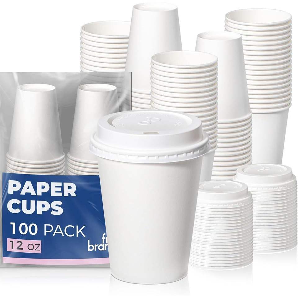 Confezione da 100 Bicchieri di Carta Premium da 350 ml con Coperchio, Antigoccia, per Bevande Calde, da Asporto