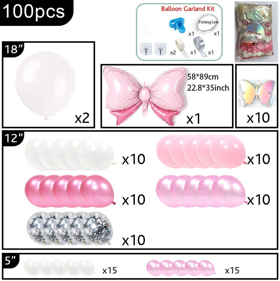 100 Pcs Pack of Pink Pastel Silver Confetti White Balloons Bow Tie Foil Balloon and Laser Butterflies for Girl Baby Show