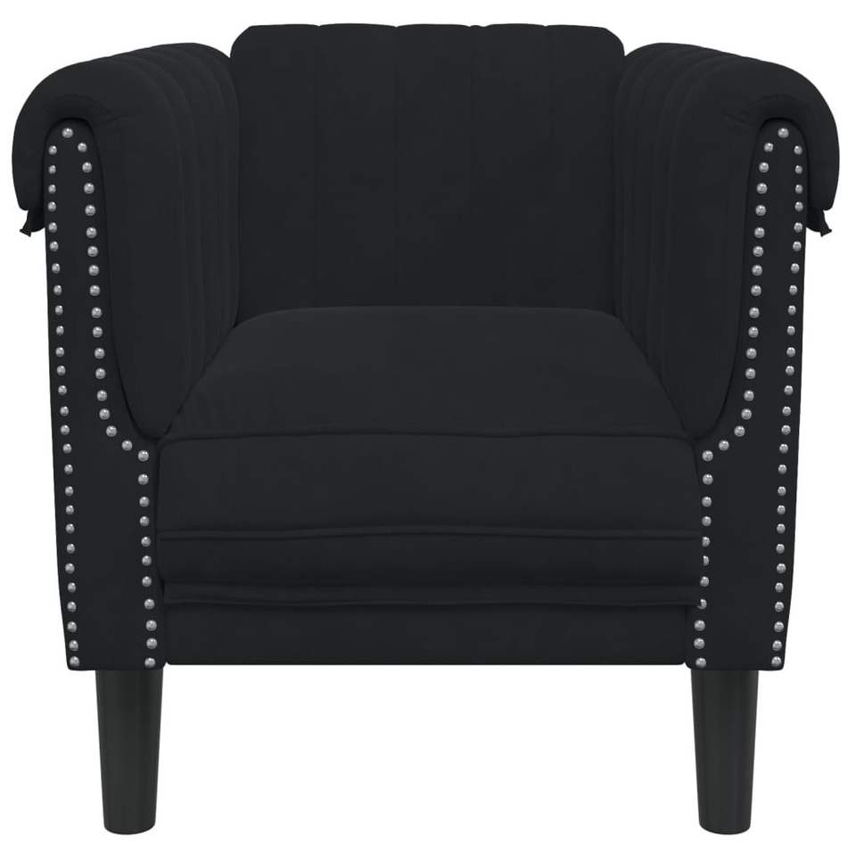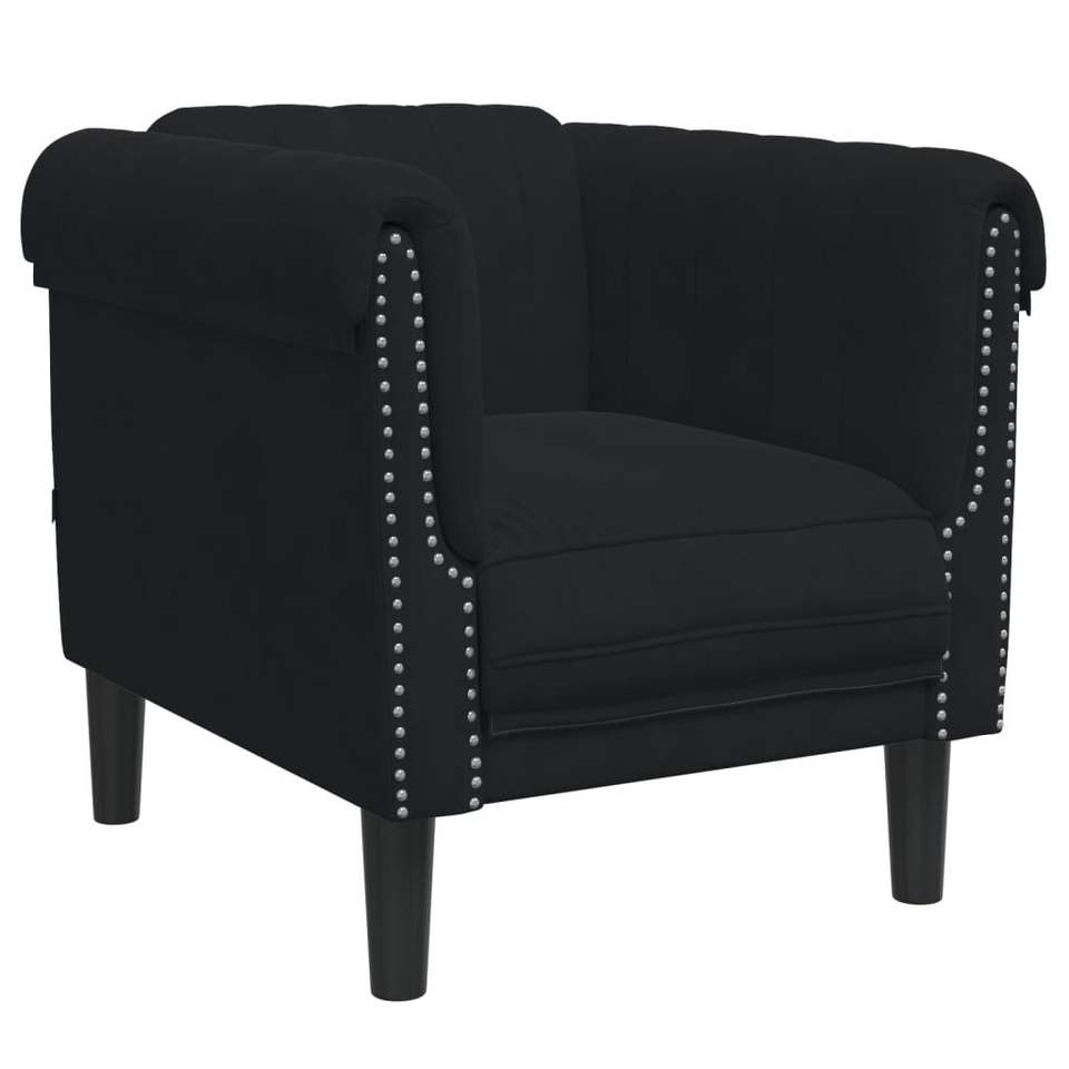 Poltrona in Velluto Nero 100% Poliestere per Soggiorno, Struttura in Legno Massello e Compensato