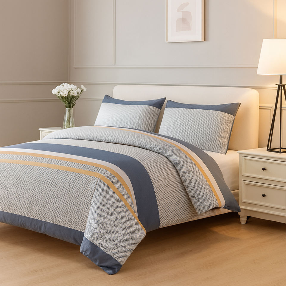 Manemi Modern Striped Duvet Cover Set 100% Polyester Woven 3 Piece Home Use