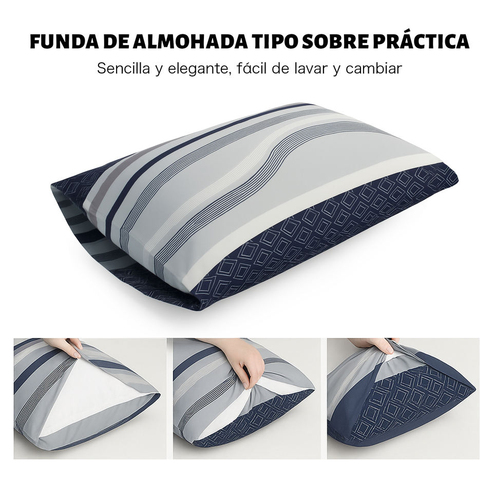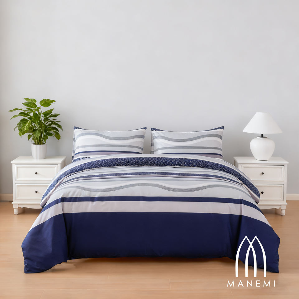 Set Copripiumino Moderno a Righe con Cerniera in 100% Poliestere Tessuto, con Federe, per Uso Domestico, Morbido, Traspirante e Confortevole per un Sonno Riposante