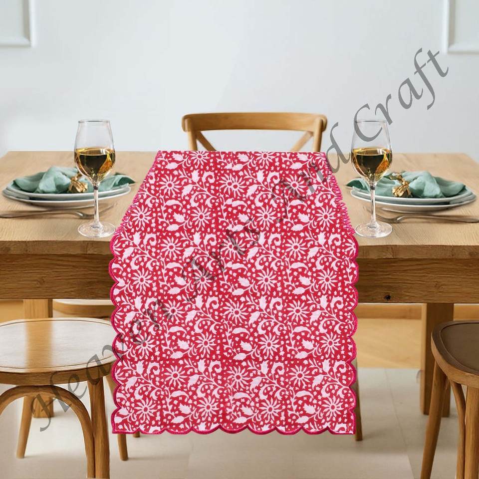 100% di puro cotone tradizionale stampa blocco a mano ricamo bordo del tavolo Runner nuovo disegno floreale a basso prezzo all'ingrosso