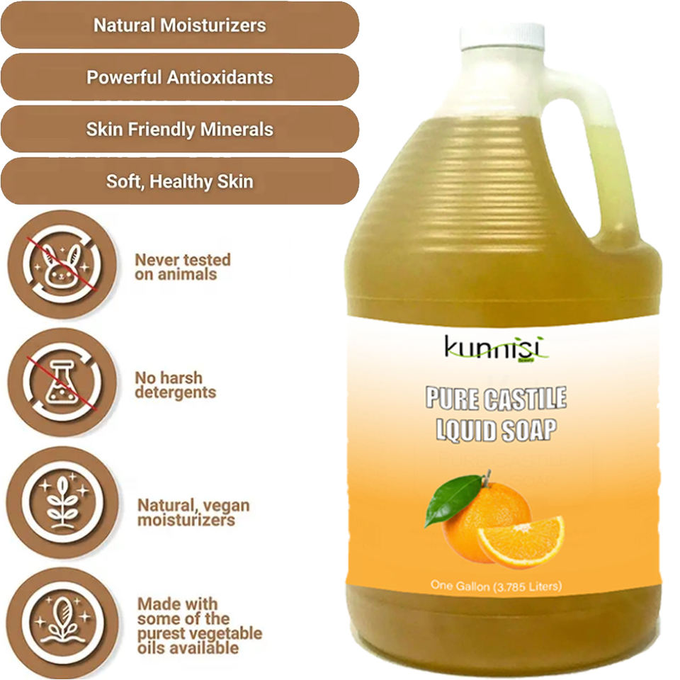 Sapone Liquido di Castiglia 100% Puro Naturale Biologico 1 Gallone OEM Etichetta Privata per Pelle Secca Cura della Pelle