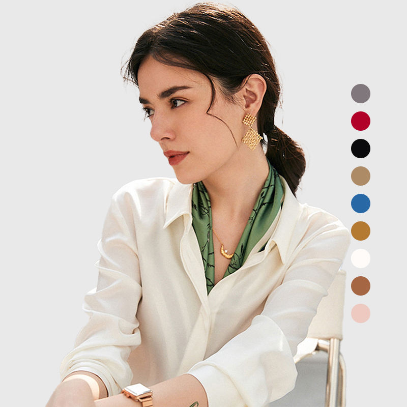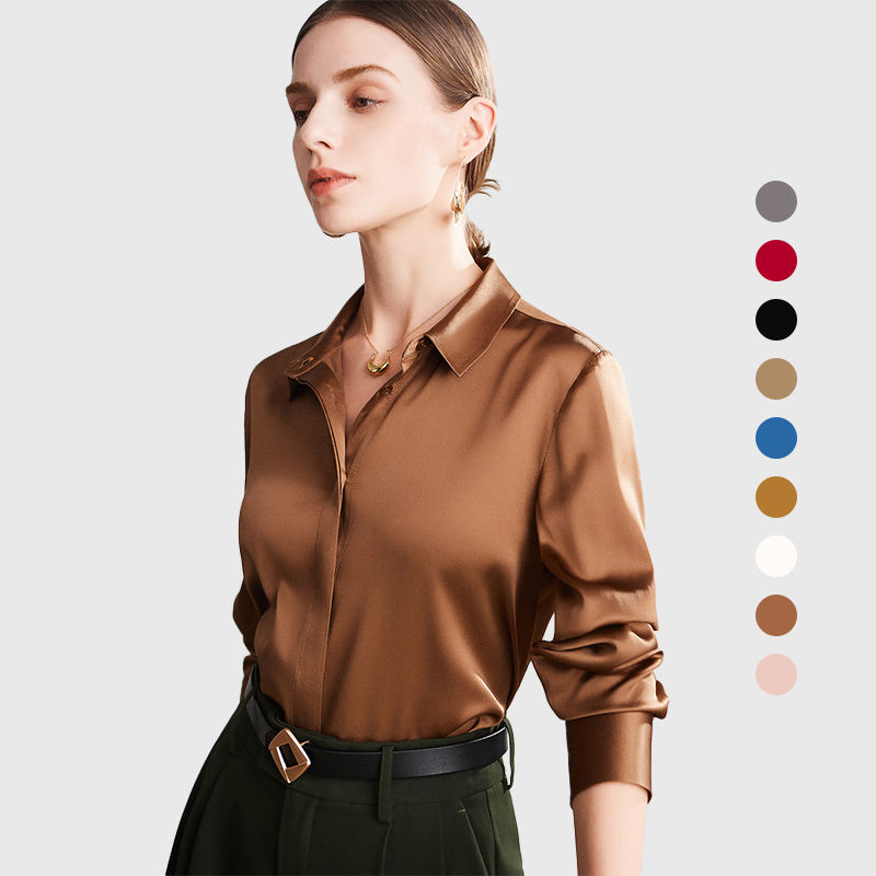 100% Pure Silk White Brown Multi Colors Long Sleeve Sexy Mulberry Silk Blouses Women High Quality for Women