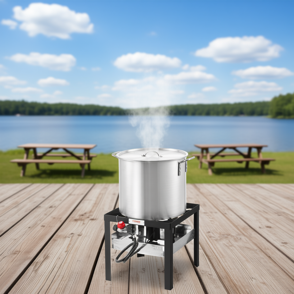 Pentola da esterno in acciaio inox da 100 Qt con colino per kit bollitura granchi e gamberi