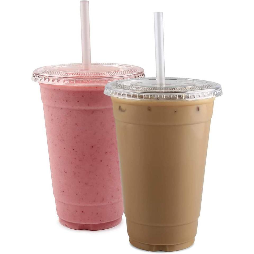 100 Set di Bicchieri in Plastica Trasparente da 16 oz con Coperchi Piatti, Set di Bicchieri Usa e Getta con Coperchi