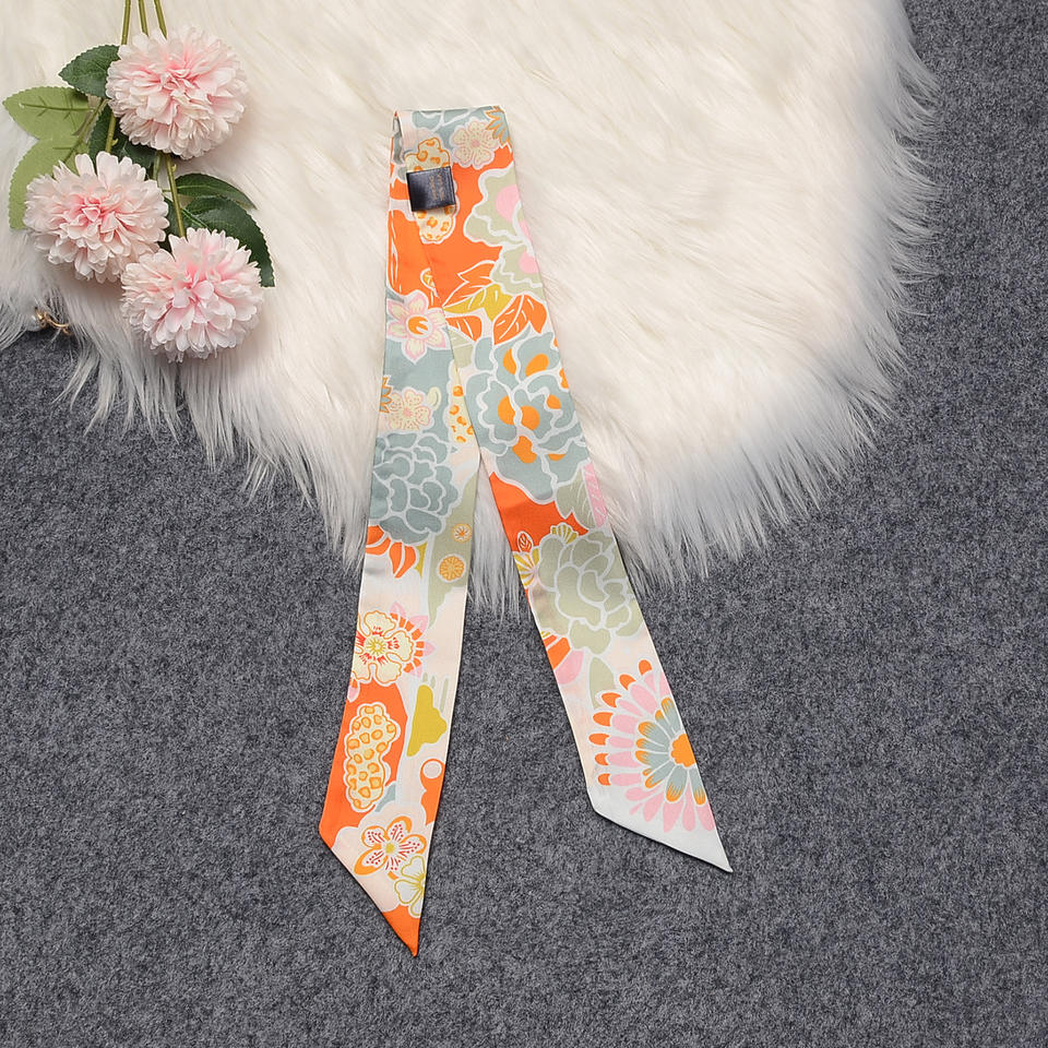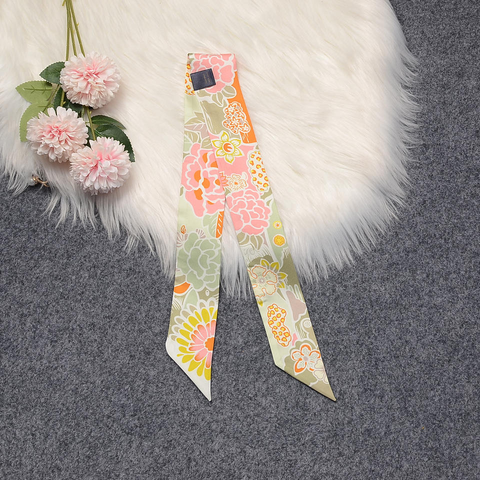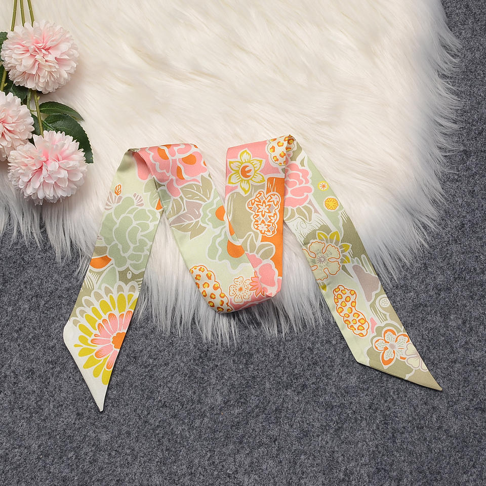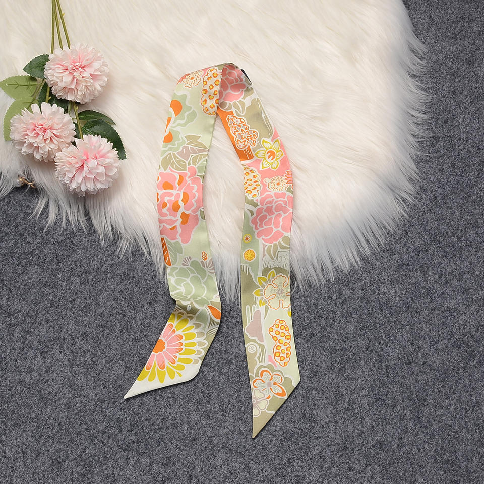 100% Skinny Headband Mulberry Silk Scarves 86x5cm Pure Silk Edge Twill Y Printed Floral Horse Scarves for Bag Handle