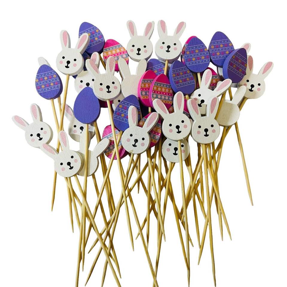 100 Unids Palillos De Cóctel De 5 Pulgadas Palitos Hechos a Mano De Bambú Huevos De Conejo De Pascua De Diseño Creativo