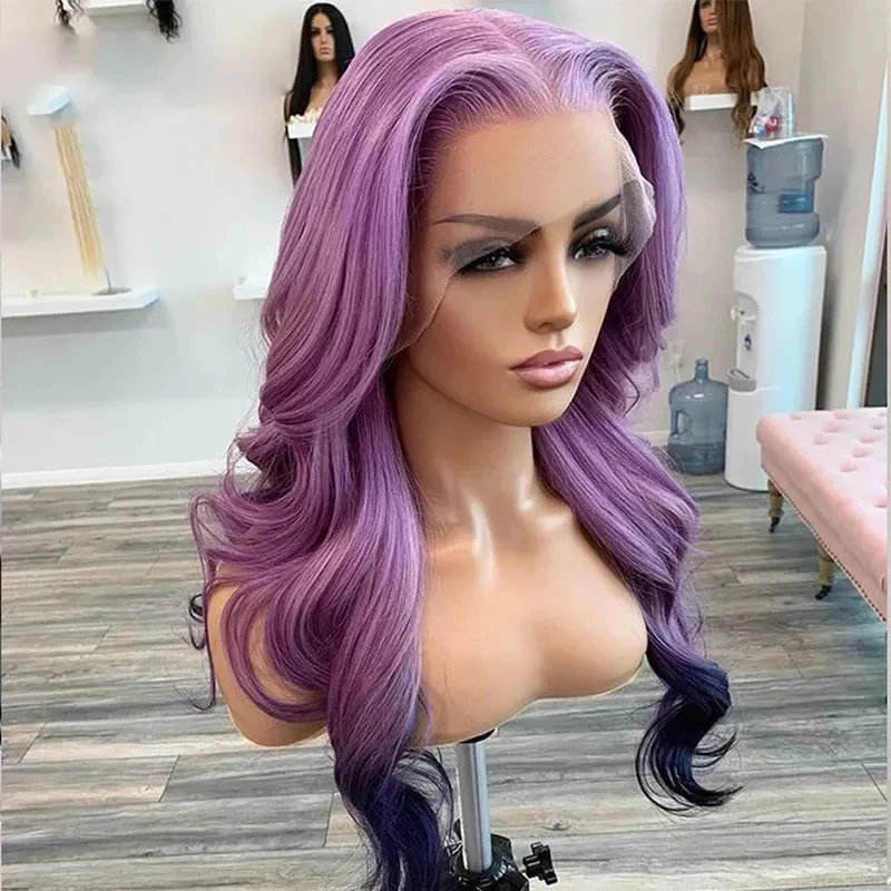 100% for Ombre Purple Brazilian Human Hair Lace Front Wig