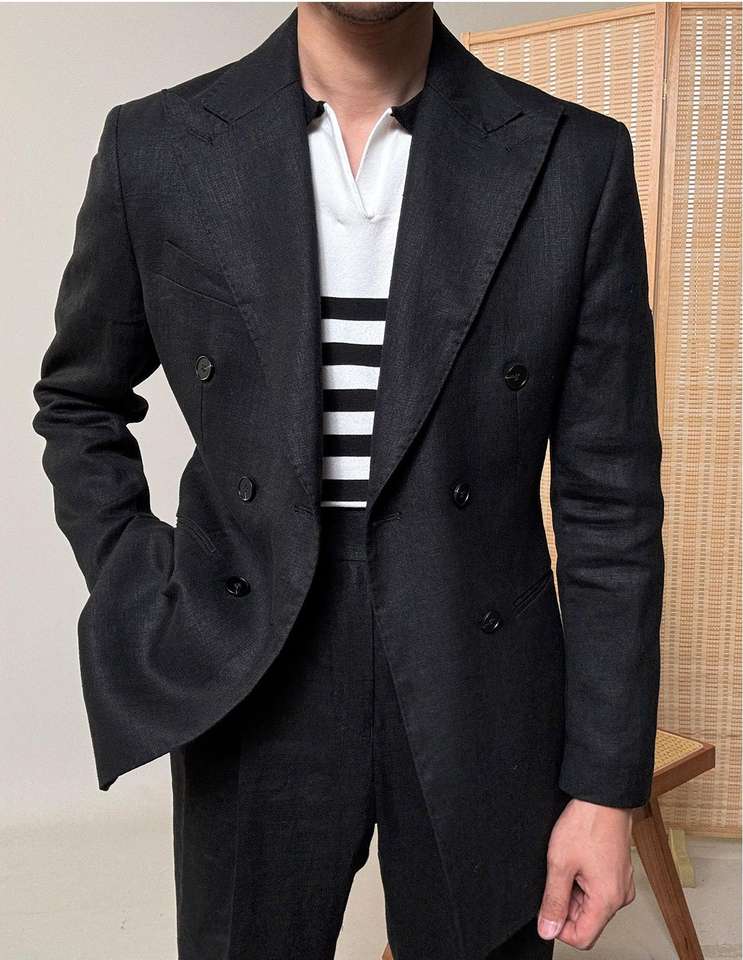 Tute 100% in lino da uomo doppiopetto da sposa da sposo pantaloni abiti formali da uomo con risvolto a punta abbigliamento estivo