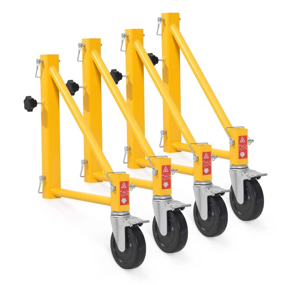Supporti per Ponteggi Stile Baker, Capacità di Carico Totale 450 kg, Set da 4, in Acciaio al Carbonio, con Ruote Girevoli, Accessorio per Ponteggi