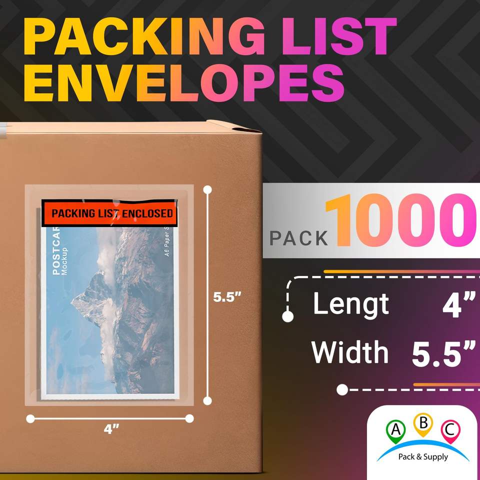 Pacco 1000 trasparente nero nero 2 Mil polietilene autosigillante busta lista di imballaggio 4X5.5 pollici per fattura custodia lista di imballaggio