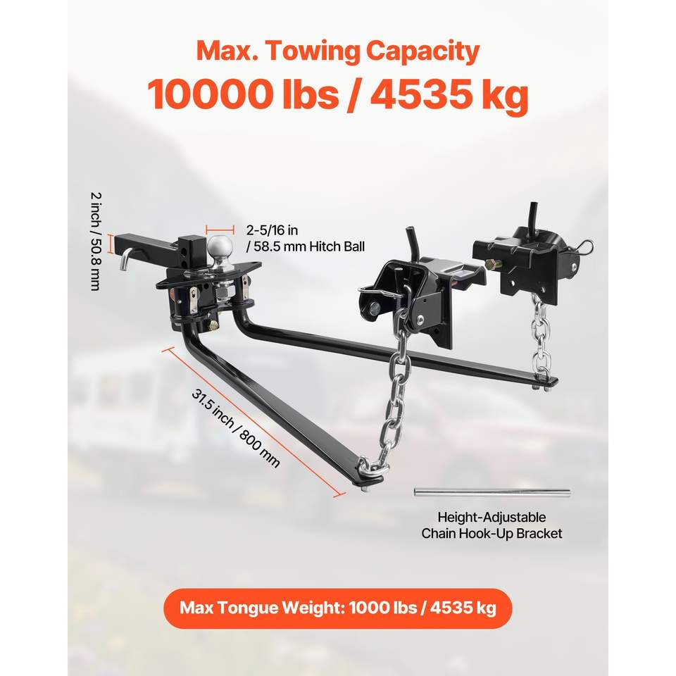 Kit di Distribuzione del Peso per Gancio di Traino con Capacità Massima di 4500 kg e Supporti per Gancio a 2 Gambe per Facile Trazione