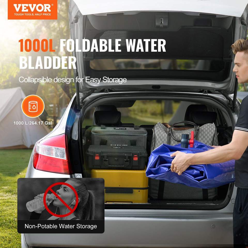 Serbatoio d'Acqua per Camper da 1000L/264 Galloni, Grande Capacità, in PVC Blu 1000D, Contenitore Flessibile Pieghevole per Idratazione