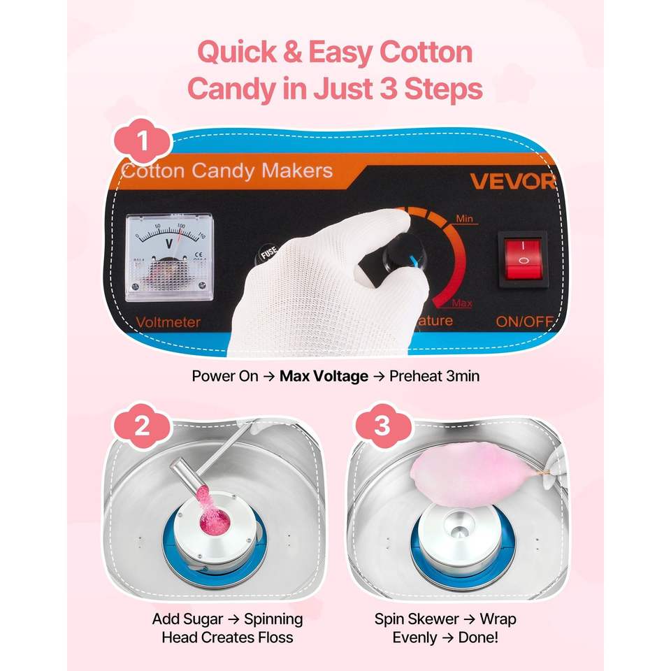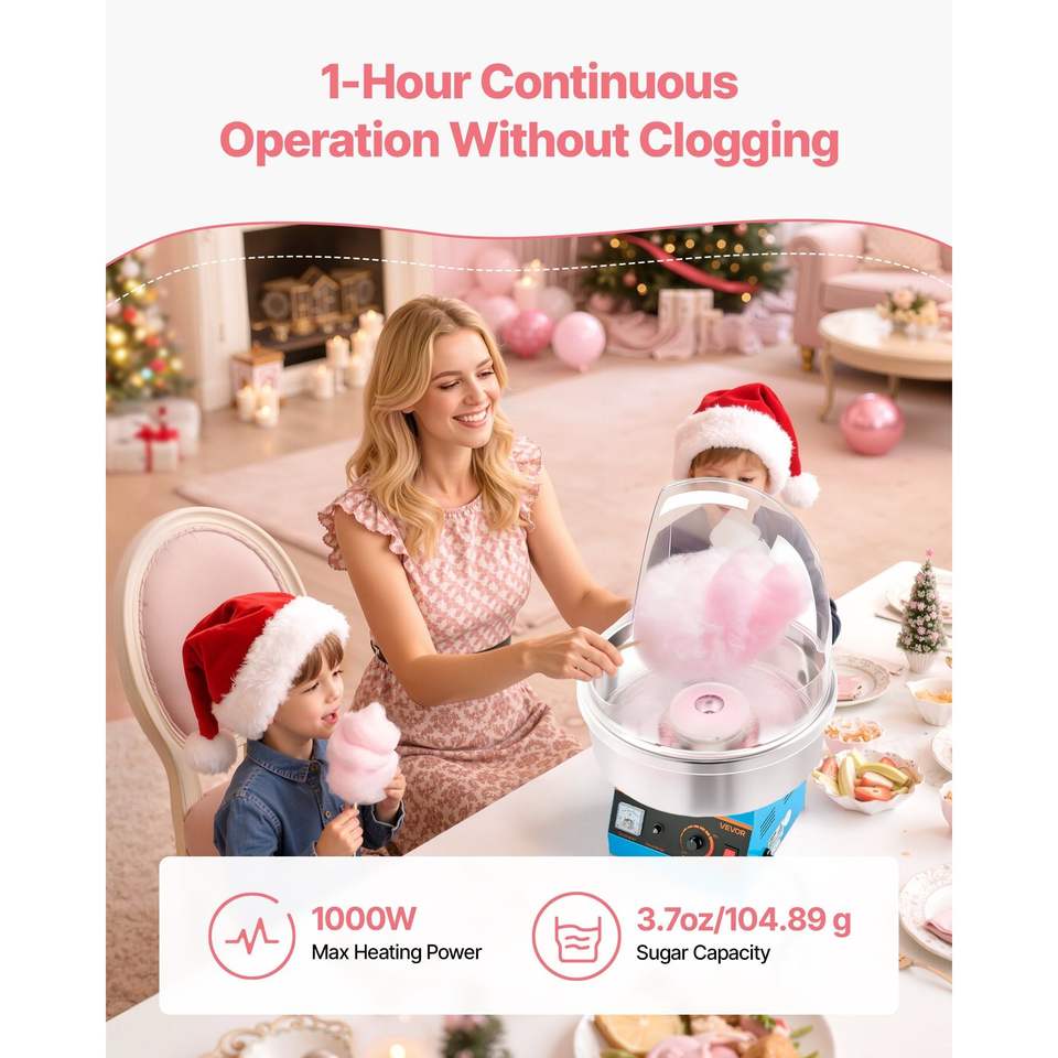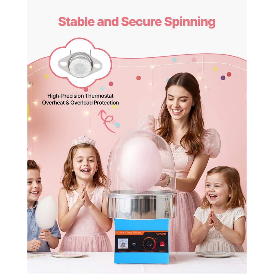 Macchina Elettrica Commerciale per Zucchero Filato da 1000W con Ciotola in Acciaio Inossidabile e Copertura