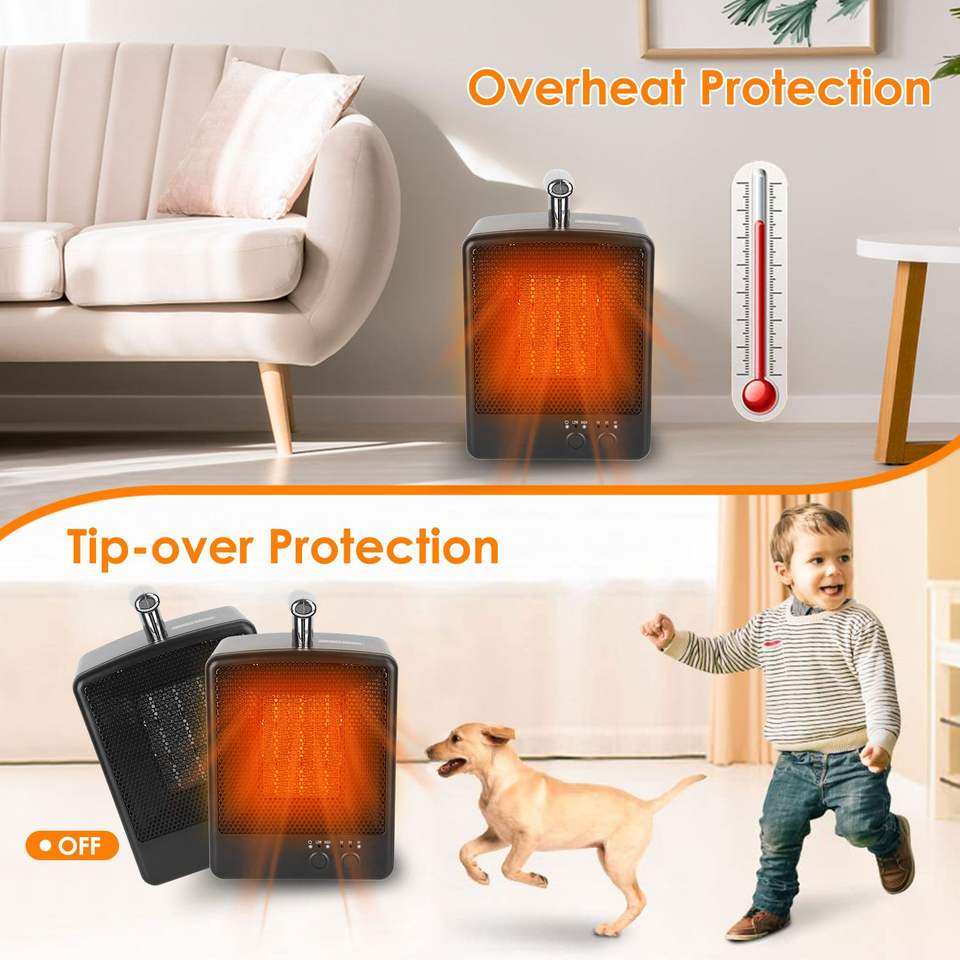 Stufa Elettrica Portatile in Ceramica da 1000W con Temperatura Regolabile, Timer e Protezione da Surriscaldamento, Ventilatore Personale