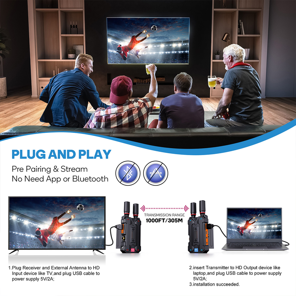 Trasmettitore e Ricevitore Video Professionale Wireless HDMI 4K a Bassa Latenza SDI 1000ft H.265