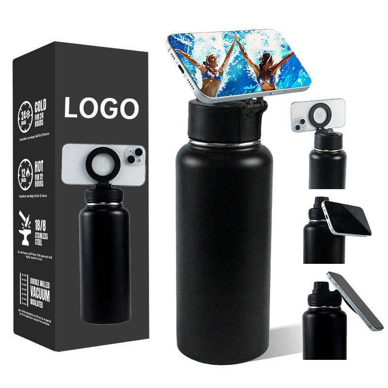 1000ml Magnetic Phone Water Bottle Holder Vacuum Flask Large Capacity Sport Bottle with Leakproof Spout Lid Insulated Cup