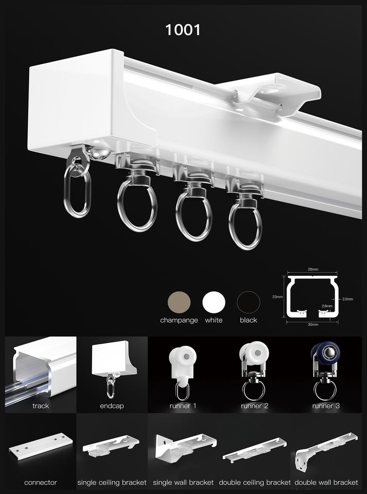 1001 High Quality Heavy Duty Curtain Track Ceiling Aluminum Curtain Double Tracks Curtain Track Aluminium