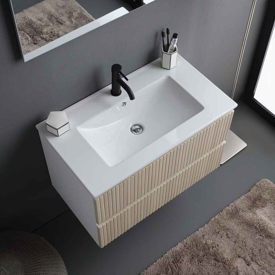 100CM Canvassed Suspended Bathroom Cabinet with 2 Drawers and 100X60 Bali Mirror Elegant Bathroom Vanities