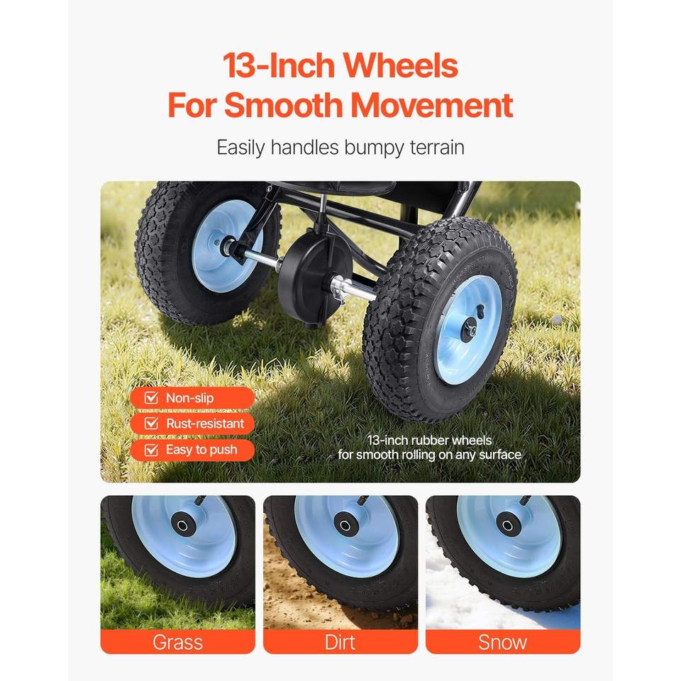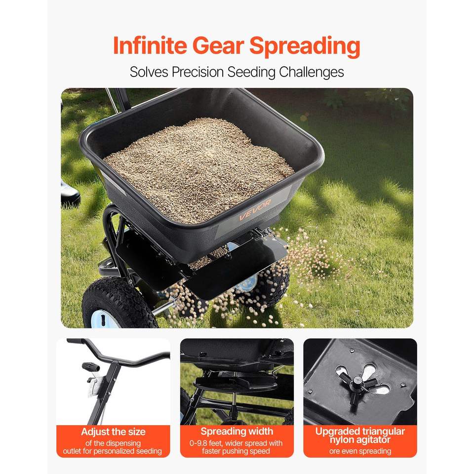 Spargitore a Spinta Manuale da 100 libbre con 13 Pneumatici All-Terrain, Larghezza di Spargimento 0-9,8 piedi, Spargitore di Fertilizzante per Tutti i Terreni